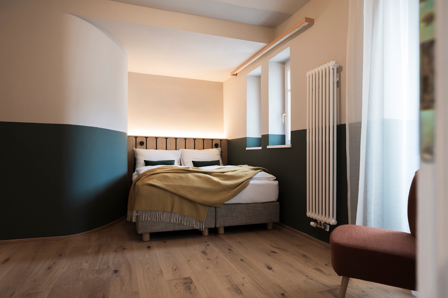 • Wohn- und Schlafbereich mit Einzelbett, Sitzgelegenheit und hochwertiger Bettwäsche